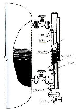液位計根據浮力原理和磁性耦合作用研制而成。當被測容器中的液位升降時,液位計主導管中的浮子也隨之升降,浮子內的永久磁鋼通過磁耦合傳遞到現場指示器,驅動紅、白翻柱翻轉180°,當液位上升時,翻柱由白色轉為紅色,當液位下降時,翻柱由紅色轉為白色,指示器的紅、白界位處為容器內介質液位的實際高度,從而實現液位的指示。