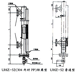 UHZ-52系列磁翻柱浮子液位計,是本廠引進、國內外同類產品,并加以吸收、消化、提高,按原化工部頒布的磁性液位計標準HG/T21584-95研制生產的產品。可用于塔、罐、槽、球形容器和鍋爐等設備的介質液位檢測。該系列磁性液位計可以做到高密封、防泄漏適應于高壓、高溫、腐蝕性介質的液位測量,使用可靠、安全性好,它彌補了玻璃板(管)液位計指示不清晰,易破碎的不足,不受高、低溫度劇變的影響,不需多組液位計的組合。全過程測量無盲區,顯示醒目,讀數直觀,測量范圍大。特別是現場指示部分,由于不與液體介質直接接觸,所以對高溫、高壓、有毒、有害、強腐蝕性介質,更顯其優越性。因此,它比傳統的玻璃板(管)式液位計具有更高的可靠性、安全性、性、實用性。