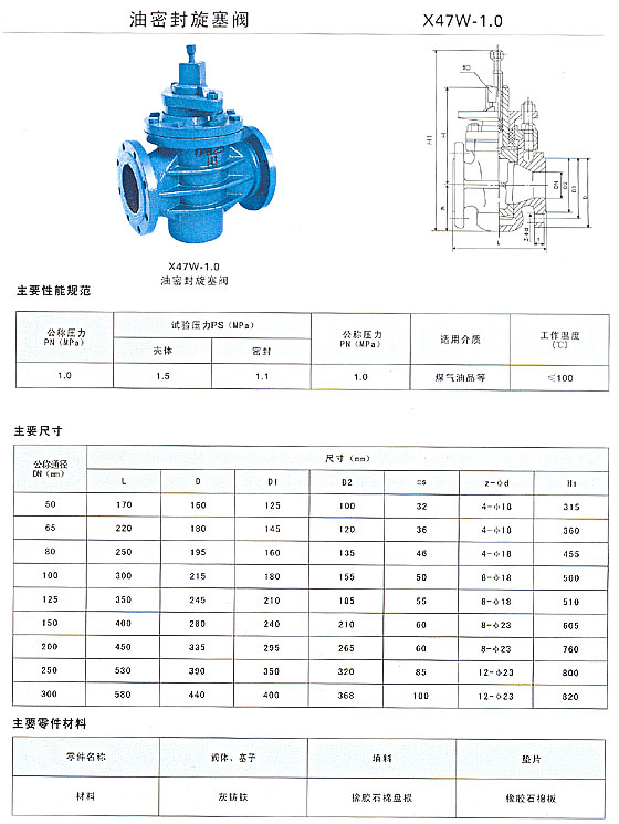 X47W油密封旋塞閥在閥體和旋塞上有油槽,在旋轉柄上可注入密封脂的止回閥,靠注入密封脂加強密封性能。X47W油密封旋塞閥的閥體和閥蓋連接采用螺栓,閥體和閥蓋間有調整墊,該調整墊既要保證閥體與閥蓋的密封,又要保證旋塞和閥體間密封性能。X47W油密封旋塞閥適用于石油、天然氣等管道。