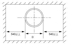 縱向管道長度L>(D+1000)mm