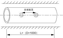將管道參數輸入主機,計算出安裝距離(由于采用插入式探頭,建議均使用直接測量方式,即Z安裝方式)定出兩個探頭的位置,安裝距離為兩個探頭的中心距。