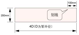 制作定位紙:取一條長4D(D為管徑),寬200mm(或D)的矩形紙帶,在距邊緣約100mm處劃一條線;