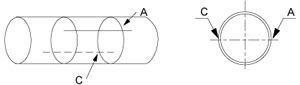 從A點開始,沿著定位紙邊邊緣量出管道1/2周長,該點為C,在C點劃一條與定位紙邊緣垂直的直線;