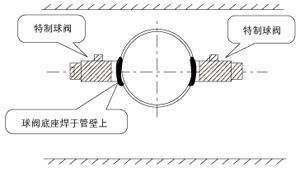 將球閥底座分別焊接在A和B兩點上。    注意球閥座中心點一定要分別與A和B兩點重合。