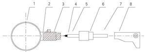 1、探頭  2、球閥底座 3、球閥 4、導向螺紋 5、緊鎖螺母 6、接線盒 7、信號電纜
