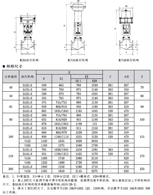 備注:該閥也可配用VAS和VP執行機構