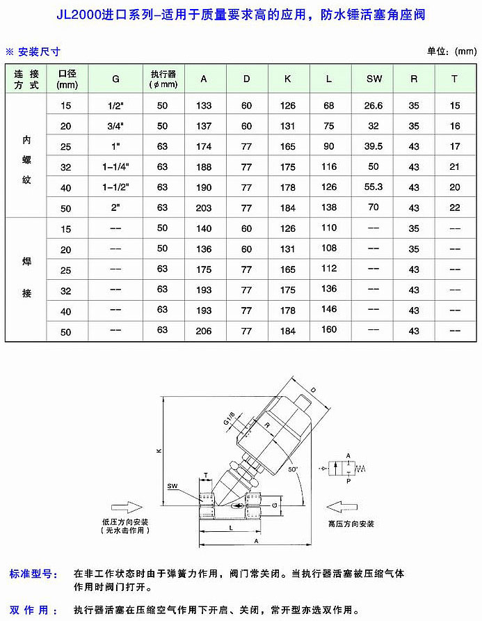 JL2000進口系列單作用角座閥是我公司的優質產品之一,在上海JL2000進口系列單作用角座閥廠家中享有極高的品質聲譽與服務評價.