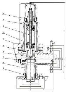 A41H型適用于工作溫度≤300℃的石油氣、空氣、水等介質的設備或管路上。A41Y-P/R型適用于工作溫度≤200℃有腐蝕性介質的設備或管路上,作為超壓保護裝置。連接法蘭標準按JB/T……94/系列1。 |
